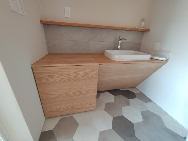無駄を削ぎ落とした洗面空間にマッチしております。